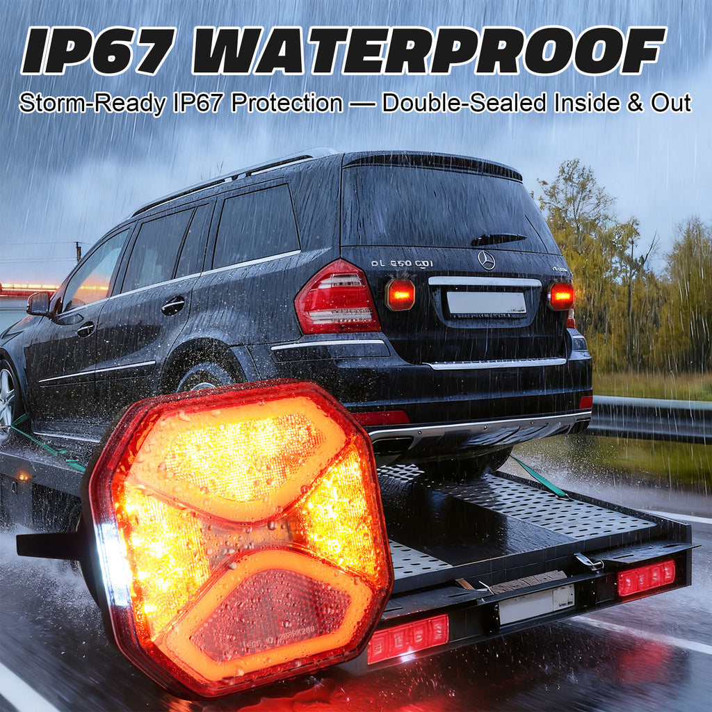 【IP67 Waterproof 】Wireless tail lights are compliant with high-quality HD polycarbonate, metal brackets, and ABS materials, achieving a submersible-grade IP67 waterproof rating, engineered to endure harsh conditions including dust, mud, heavy rain, snow, and fog