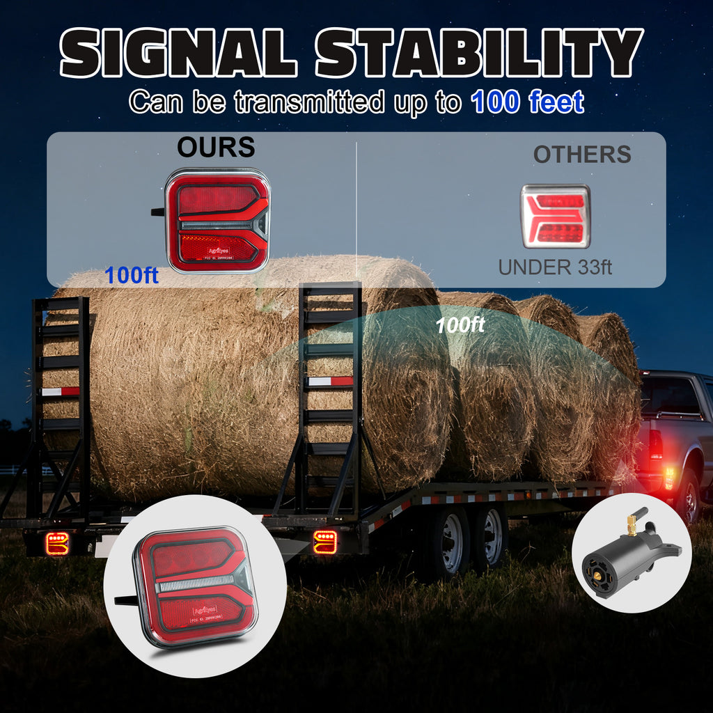 【Stable Signal】Operating on a 2.4GHz frequency, the wireless trailer lights feature a built-in antenna, delivering reliable communication for utility vehicles/trailers and enhanced safety.