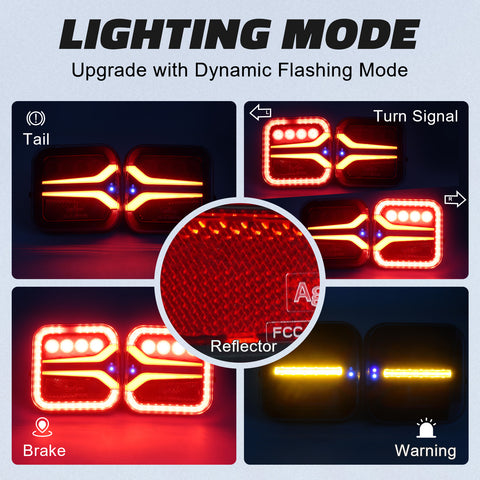 【Upgraded warning Modes】The wireless trailer brake lights feature 67 high-brightness LEDs and offer four function modes: taillight, left turn signal, right turn signal, and upgraded multiple flashing function modes, including single, double, triple, slow single, slow double, quad, quint flashes, and alternating double/triple flashes.